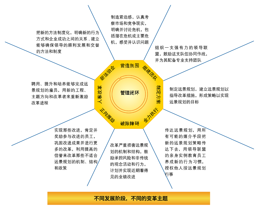 ● 变革与创新是企业持续生存发展永恒的主题。企业没有成功,只有成长;没有成功的企业,只有时代的企业;只有不断适应外部环境变化主动转型升级与变革成长的企业。
