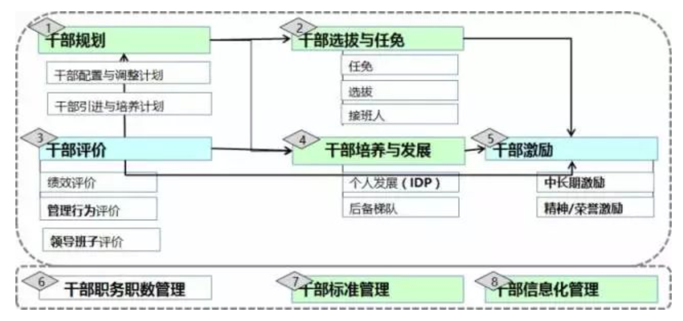 而领导干部管理体系,无非是针对领导干部这一特殊群体,思考如何定义建标、如何规划、如何评价、如何发展、如何激励、如何保留。因此,我们提出包括8个模块的干部管理体系,以使得干部管理系统化、规范化。