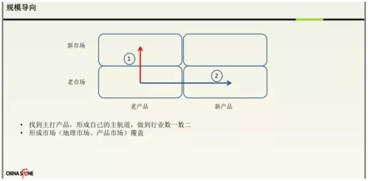 上面讲了需求、竞争,另外简单讲一下大企业的定律。钱德勒提出的适用于工业时代的大企业定律,首先是从数量到区域,再到价值链、到多元化。先做数量,这就是规模导向。找到大的产品,形成自己的主航道,一定要做到产业的数一数二,这时候要形成地理市场然后覆盖,做几个省,做到全国,做到全世界。