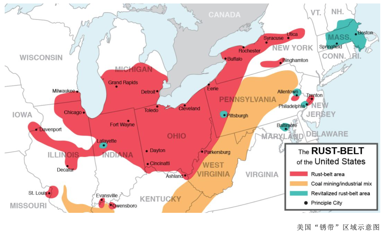 刚才祁斌讲到RUST-BELT(注:铁锈地带指美国等已陷入经济困境的老工业区),这张照片(现场PPT)上的建筑其实有三层会堂高,我们可以想像一下身临其境的感受,现场看到的是锈迹斑斑的庞然大物。我拍照片的时候是2016年秋季,很多年前已经变成这样了,刚才祁斌放了一张RUST-BELT的地图,这张地图是美国的,颜色越深就是锈得越厉害的地方,我在哥伦比亚大学做访问的时候,仅仅是靠近纽约市的一处而已,其实它曾经是美国第一大工业化的地方,这是它非常好的景观。怎么会变成这样呢?这有什么道理值得我们后起的后工业化国家思考?