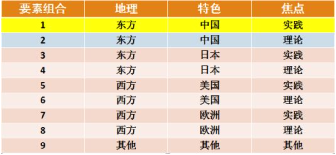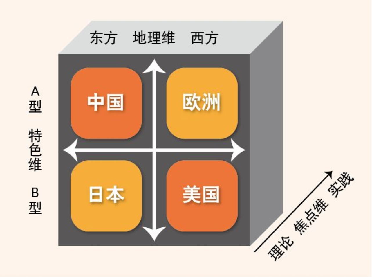 同时,思考与他国的共性、差异及中国管理的定位,我们从地理、特色、焦点三个维度,将各国企业管理划分为以下九种组合,并用二分法对比了中国与欧美、日本的差异。