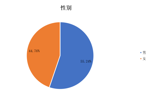 在所有2330名被调查对象中,参与调查的男性人数为1287,占总体的55.24%;女性人数为1043,占全部被调查对象的44.76%。