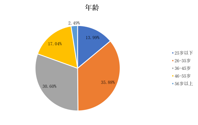 所有被调查对象的平均年龄约为36岁,其中年龄最小者为7岁,年龄最大者为79岁。而在所有被调查对象中,26-35岁的民众占比最大,为35.88%,其次是36-45岁的民众(30.60%),56岁以上的民众占比最小,为2.49%。