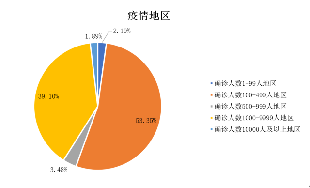 在参与本次调查的人员中,超过一半的被调查者来自于确诊人数为100-499人的疫情地区(53.35%);其次,39.10%的被调查者来自于确诊人数为1000-9999人的疫情地区。来自于确诊人数为10000人及以上地区的被调查者最少,只占全部人数的1.89%。