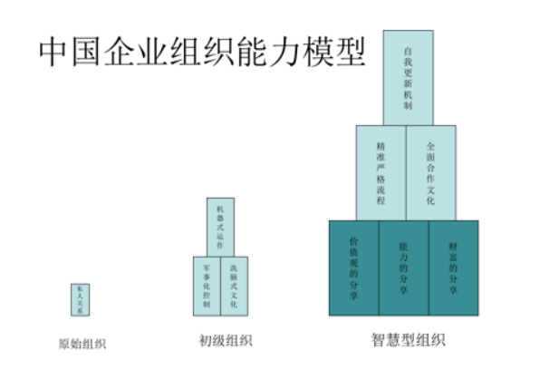 原始组织和初级组织都依赖于老大的个体智商,智慧型组织是唯一可以让组织内的个体智商叠加,让集体智商大于个体智商的组织形式。