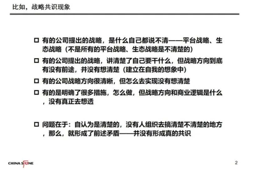 我就用这个案例来说明,我们看到的问题并不一定真正的问题,如果不把真正的问题找出来,就根本无法想透,也就不可能达成共识,更不可能有战略行动力。