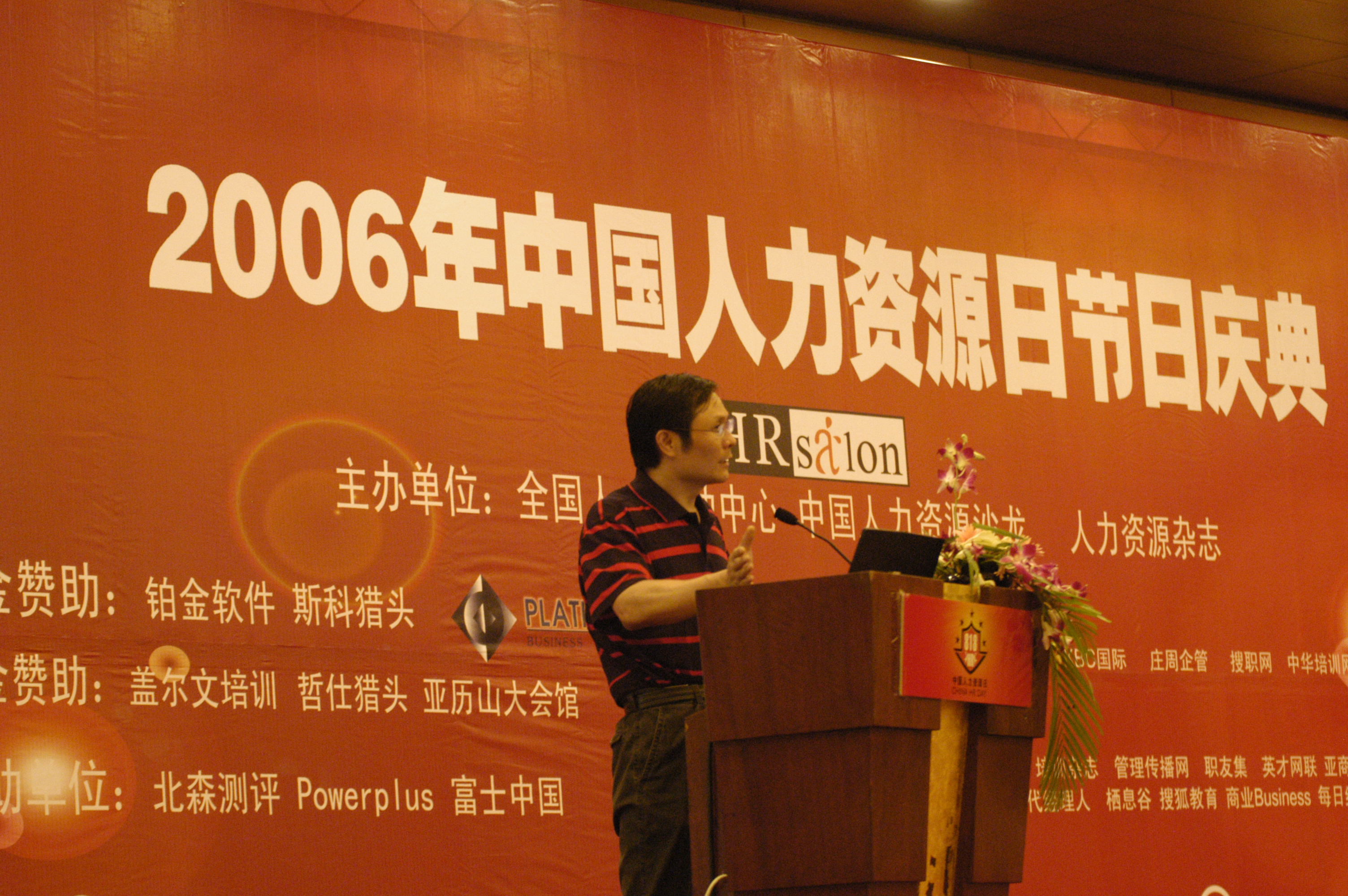 2006年8月18日,人力资源工作者迎来了属于自己的节日——中国人力资源日,节日庆典在上海华亭宾馆、北京广西大厦两地同时隆重举行,诸多行业的HR和相关的政府官员、学术界的人力资源专家与众多著名企业CE0、高管、人力资源总监济济一堂。国际、国内经济形势风云变幻,人才的争夺战愈演愈烈,本次节日庆典聚焦“人才保留与激励”等HR行业的最新热点,欧剑锋董事长应邀参加了此次庆典并且带来了主题演讲——《基于治理结构的人力资源管理》,此次节日庆典获得了圆满成功。