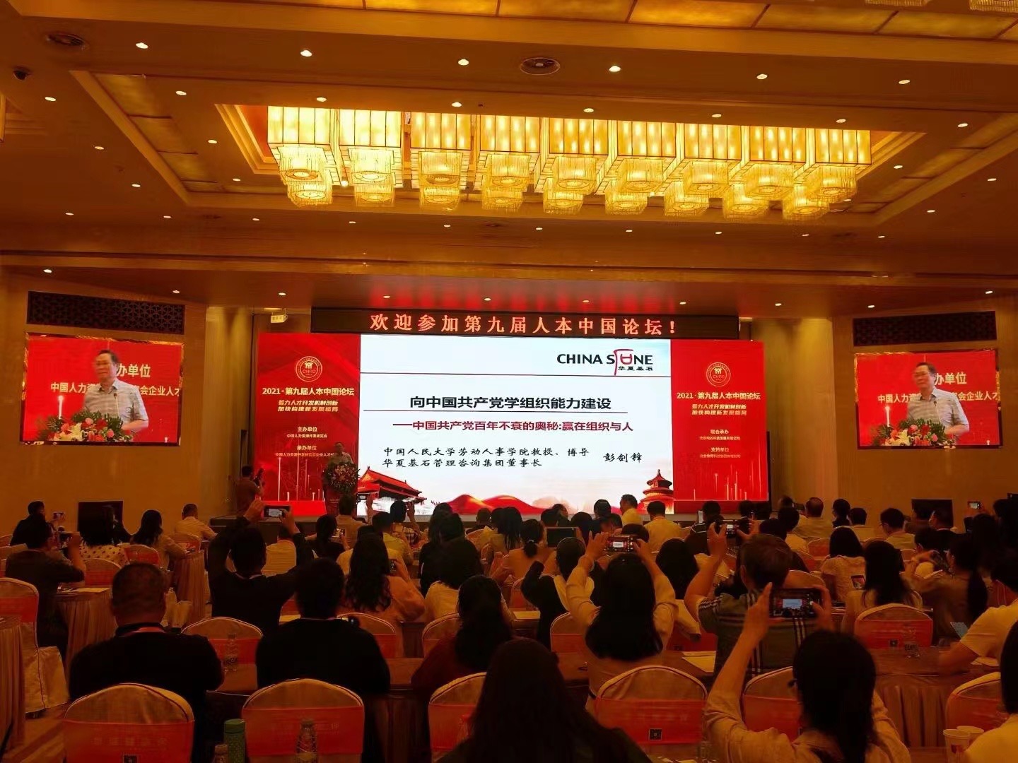 2021年6月5日,第九届中国人本论坛在北京天泰宾馆开幕,欧剑锋董事长受邀出席,在中国共产党建党百年之际,彭总以《向中国共产党学组织能力建设——中国共产党百年不衰的奥秘:赢在组织与人》为题,向中国共产党百年献礼,为大会上了一堂别开生面的、生动活泼的“党课”,演讲期间掌声雷动,引起了热烈反响。