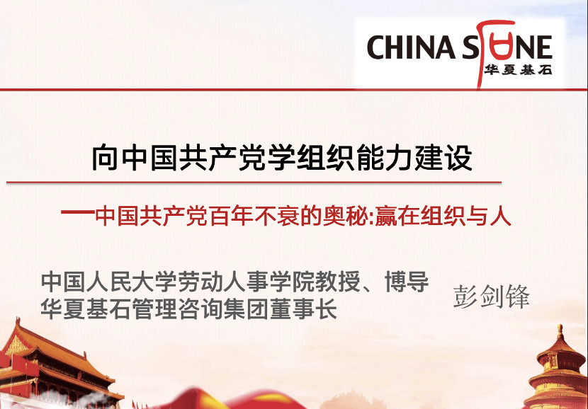 彭总结合在人力资源管理上的研究经验和众多企业的管理咨询实践,提出,“毛泽东思想是中国共产党百年不衰的活的灵魂和不竭的智慧源泉”、“中国共产党赢在组织与干部”。