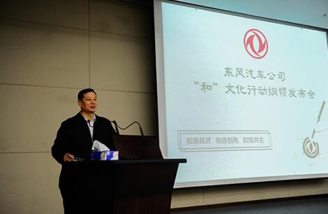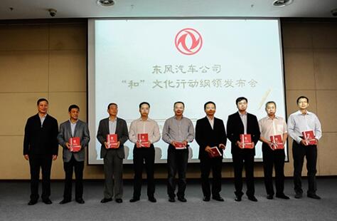 2016年10月18日,《东风“和”文化行动纲领》发布会在公司总部武汉举行。发布会由东风公司总经理、党委副书记李绍烛主持,发布会现场,东风董事长、党委书记竺延风、副总经理童东城、欧阳洁,东风汽车集团股份有限公司副总裁邱现东、党委副书记何伟分别为公司职能部门代表、直属(板块)代表、基层单位代表授书。